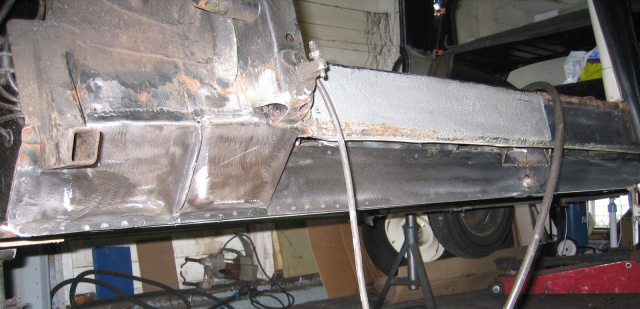 By paying particular attention to detail we make sure that the panels are thoroughly de-rusted using mechanical and chemical means, repair sections of the correct shape, either bought in or made in-house, are then let in and then the welds cleaned up to get rid of all traces of oxidisation. The clean shiny bare metal is then epoxy primed as soon as possible to prevent the surface oxidising. Ideally we will not leave bare metal even overnight as it will begin oxidising invisibly and if not cleaned off will cause problems later on.